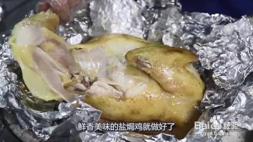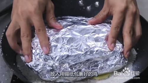 将鸡腌制好包上锡纸,把盐炒香炒干盛出一部分,铺上生姜,放上鸡,盖上另外一部分盐,盐焗一个小时即可开吃,以下是详细的操作步骤: