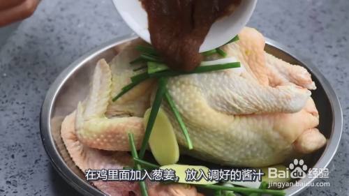 放入葱姜酱汁腌制鸡