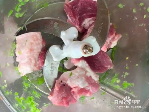 再在料理杯里放入十来块猪肉片、加葱姜、打成泥。