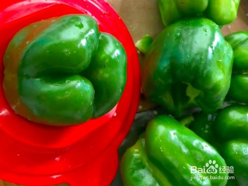 先准备青椒四个,洗干净入开水锅焯水五分钟,焯好过凉备用。