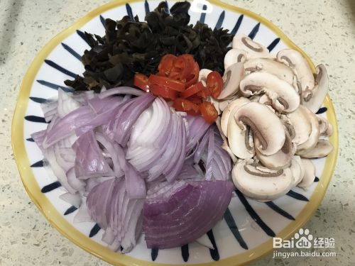 蘑菇、洋葱、琼脂、胡椒、切块、备用