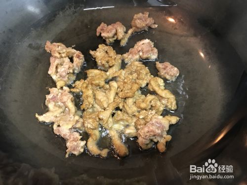 瘦肉切丝,加入酱油、淀粉,腌10分钟