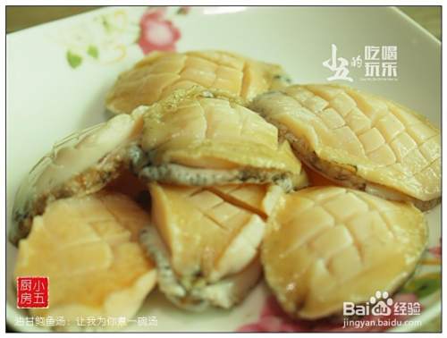 下鲍鱼,约煮3分钟左右,鲍鱼煮熟即可。