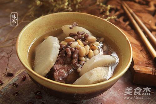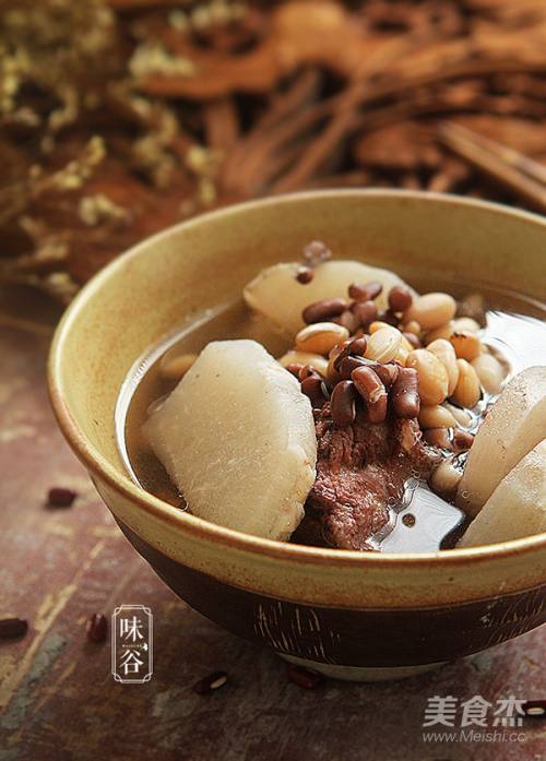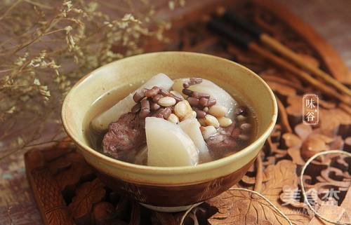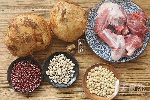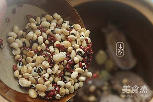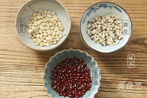 2赤小豆、眉豆、扁豆洗净,浸泡1小时。(赤小豆不是平常所说的红豆。红豆比较圆,赤小豆是细长的,稍扁。赤小豆除湿的功效较强供药用调理,而红豆主要供食用。)
