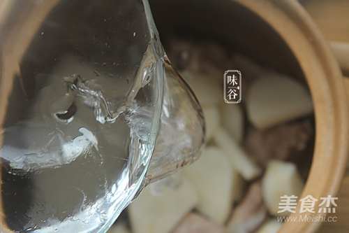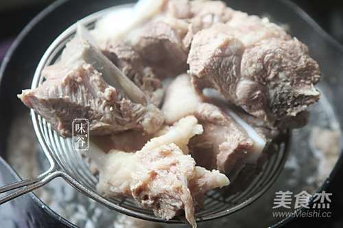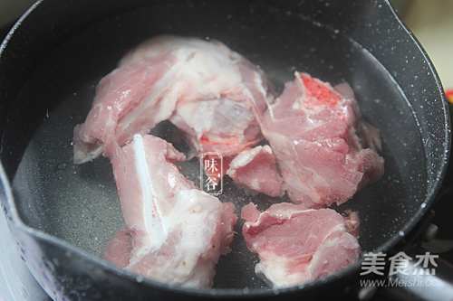 3猪扇骨洗净后斩大件,放到锅里加水大火煮开。