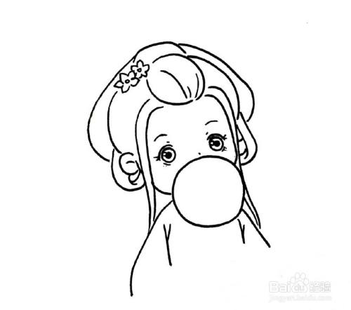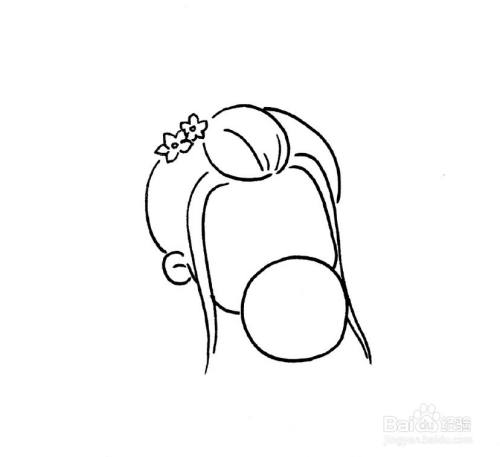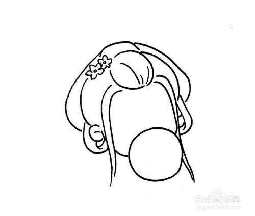 首先我们先画小姑娘的头型,然后加上遮在她脸上的扇子