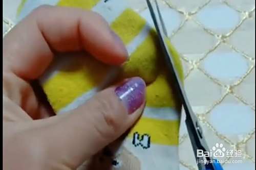 拿一双旧袜子,用剪刀剪掉脚跟部分。