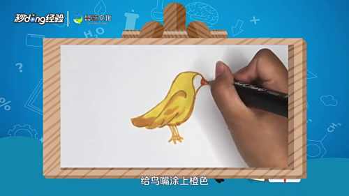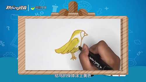 给鸟的身体涂上黄色,鸟尾和翅膀部分涂上一点深黄色。