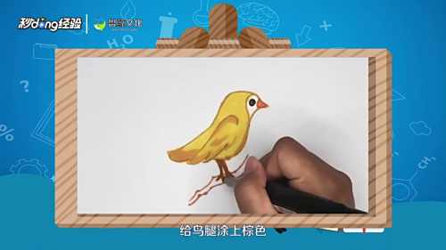 画出鸟的眼睛和腿,用黄色进行勾边。