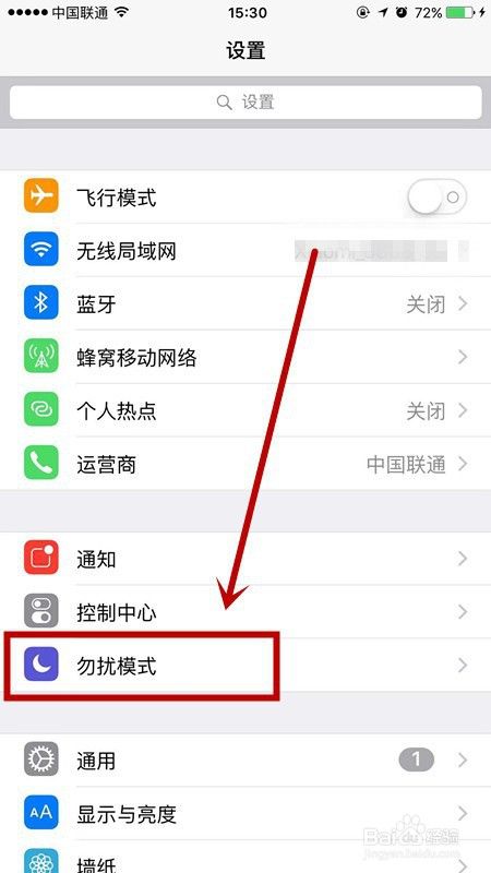 在 “ 设置 ” 页面上找到并点开 “ 勿扰模式 ” 。如下图所示。