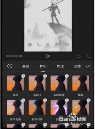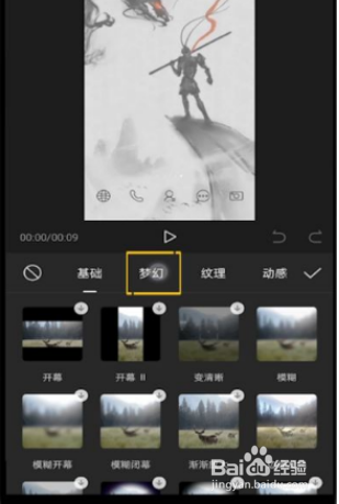 4、在弹出的特效窗口,选择“梦幻分类”;