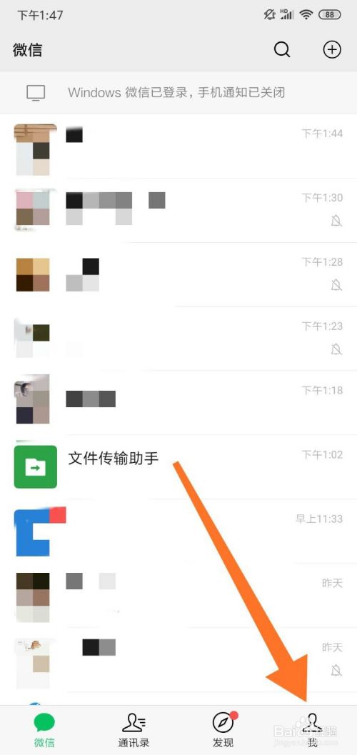 我们打开微信登录自己的账户,点击右下角“我 的”进入个人界面;