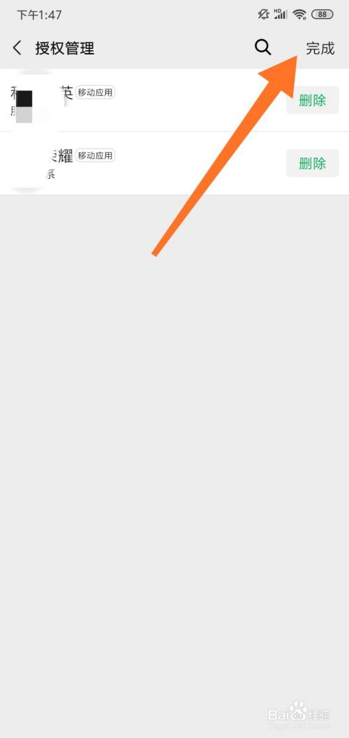 进入授权管理页面,列表上都是微信曾经授权登录过的程序应用,点击右上角管理;