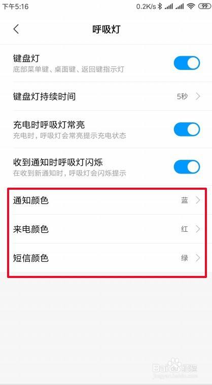 接下来在打开的页面中点击呼吸灯的菜单项。