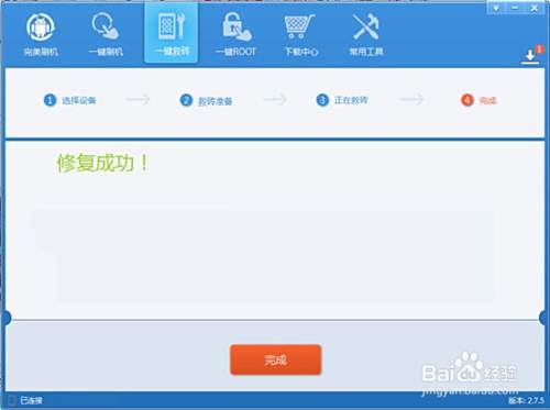 救砖成功,成功后会重启手机,如果进入不了开机界面,那就需要双清,手机进入recovery模式(关机,拔电池5秒后,同时按住音量下键+电源键+HOME键(无HOME不用按)),执行“Wipe data/factory