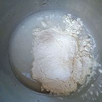 打蛋盆里放水,自发面粉,用筷子搅拌至没有干粉,然后双手粘上玉米油去揉