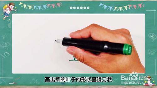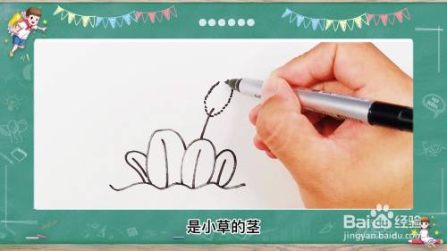 然后画多条长弯线,画出草的叶子的形状,呈镰刀状,画的长短可以参差不齐,展现小草生机勃勃。