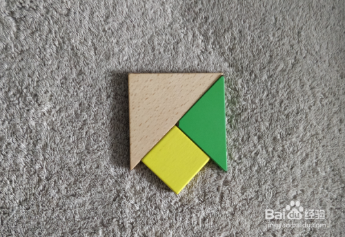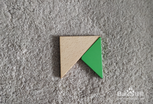放上左右挨着的本色三角形、绿色三角形,如图。