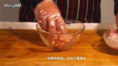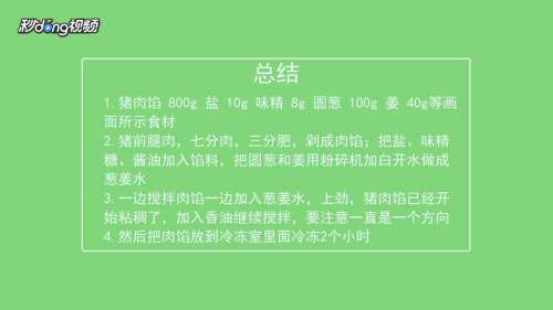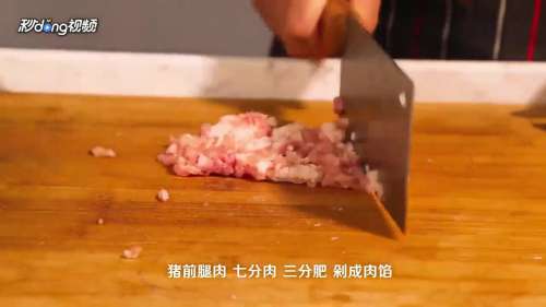 2猪前腿肉,七分肉,三分肥,剁成肉馅,把盐、味精、糖、酱油加入馅料。