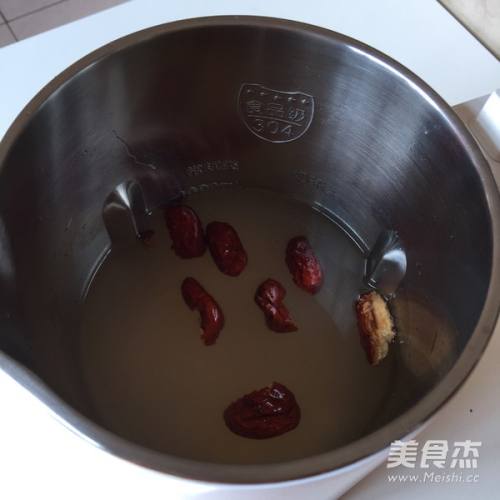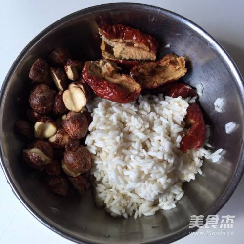 2糯米、红莲子和红枣洗干净,红枣切开两半去核