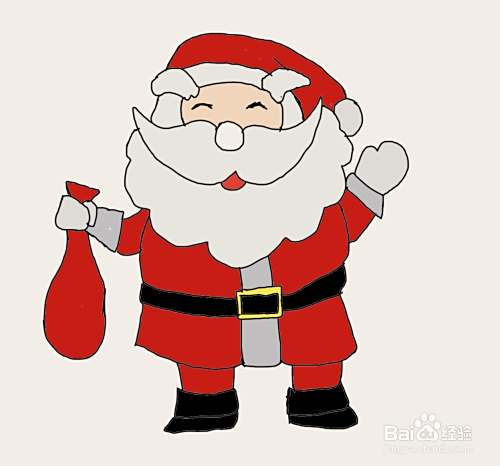 第八步,给圣诞老人的脸部、胡须、手部都涂上对应的颜色,卡通人物圣诞老人就画好了!