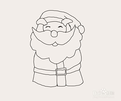 第四步,画出圣诞老人的身体形状,画出他的衣服形状。
