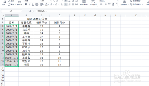 打开一个excel表,现在需要将表格中的日期转为文本格式。