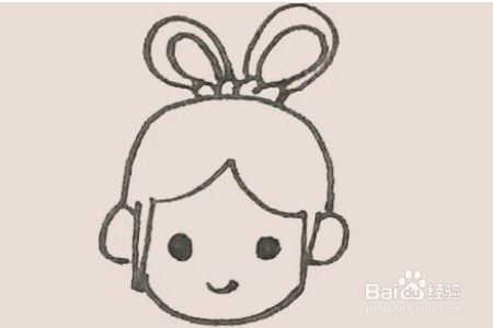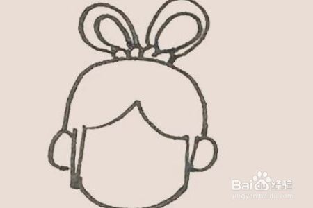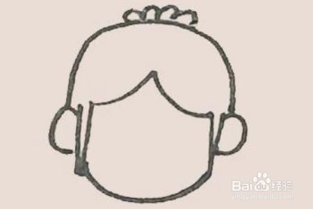 下面用一条弧线将两边连接起来形成脸,还要在两边画上半圆作为耳朵。