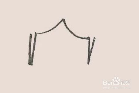 先画上两条弧线,然后再垂下来两个小尖角作为鬓角。
