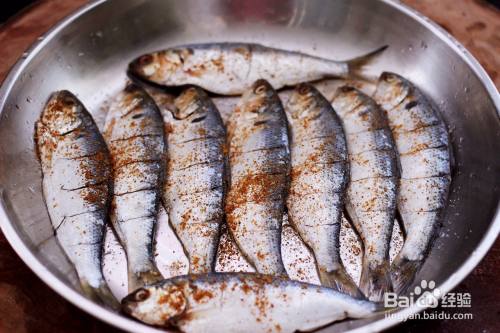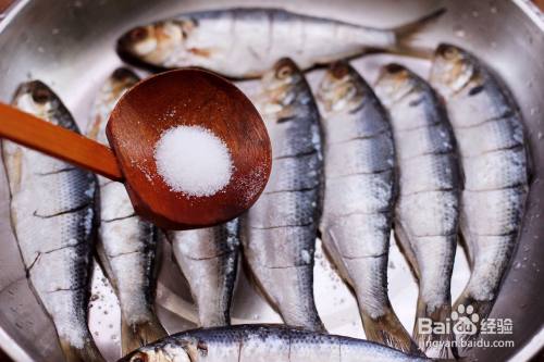 依次把所有的海鲫鱼都改好刀,再根据个人口味加入适量的盐调味。