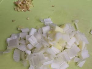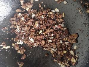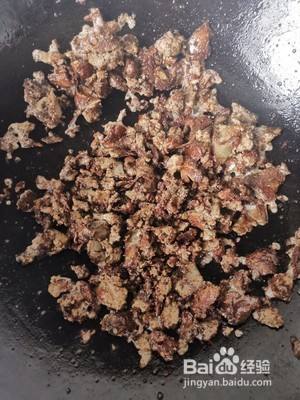 鸡肝像这样炒的碎了,有点焦的感觉,这时候把鸡肝用铲子推到锅的一边,然后锅里再少加一点油,放入葱花和姜碎