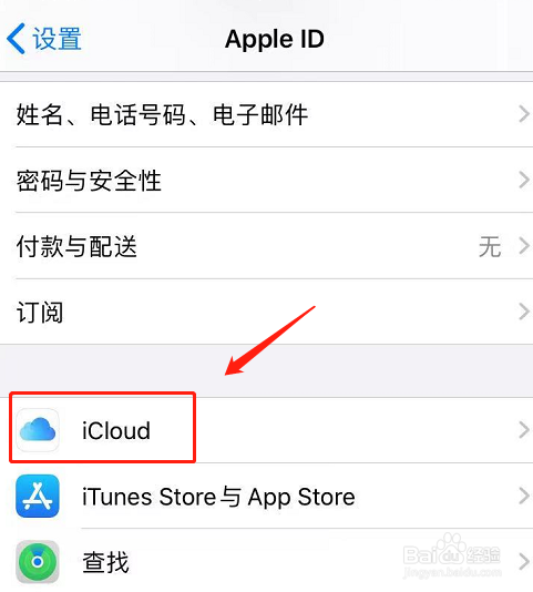 进入【Apple ID】页面后,点击【iCloud】,如图所示。