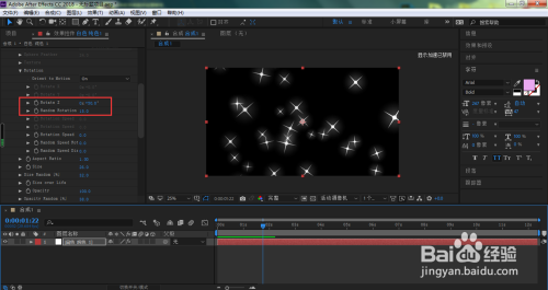 这时,星星将会自动进行不同角度的倾斜,我们还可以调整Rotate Z以及下方的随机值参数,让星星能够随机旋转