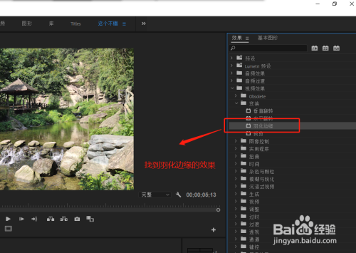 打开效果窗口,找到视频效果,在视频效果中找到变换里面的“羽化边缘”。