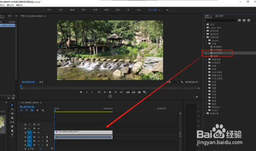 选中羽化边缘的视频效果,选中并拖动鼠标至视频素材上松开鼠标,这样就为视频素材添加了一个羽化边缘的效果。