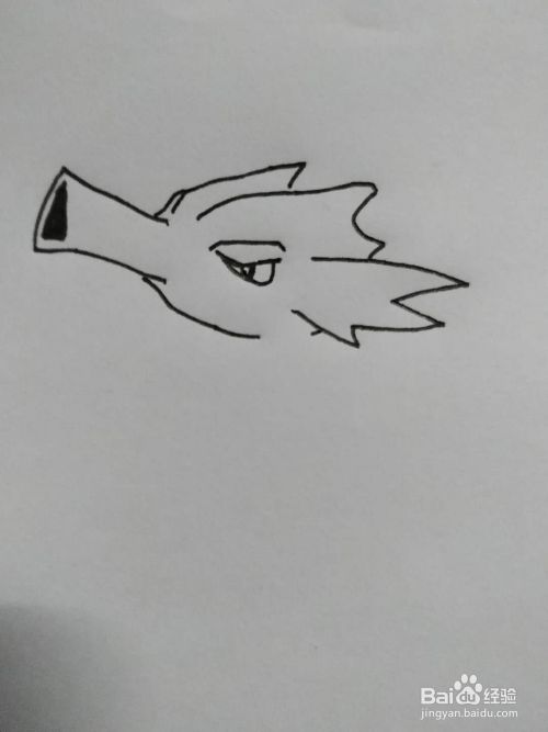 围绕着三角形,我们画上鼻子和脸部,头顶有尖刺;