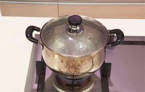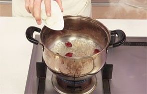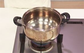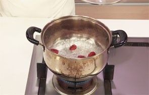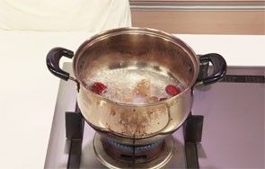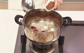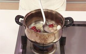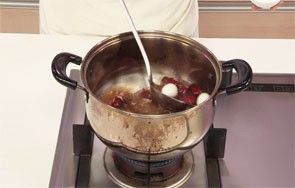 7 将锅中材料煮至沸腾,并用锅勺轻轻搅动,避免材料粘锅。