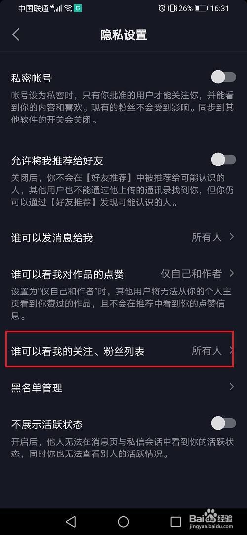 第三步在隐私设置中,可以看到谁可以看我的关注、粉丝列表