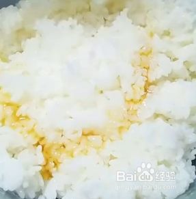 米饭中放米醋、酱油、熟芝麻,拌匀