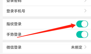 在登录设置页面,打开指纹登录按钮即可。