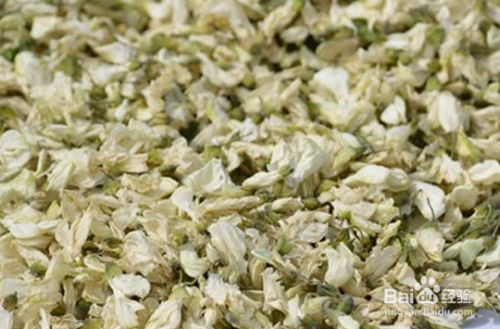 将采摘下来的刺槐的槐花清洗干净、晒干,一定要选没有完全开放的槐花,如此晒好的槐花菜能最大小限度的留存槐花的香味。