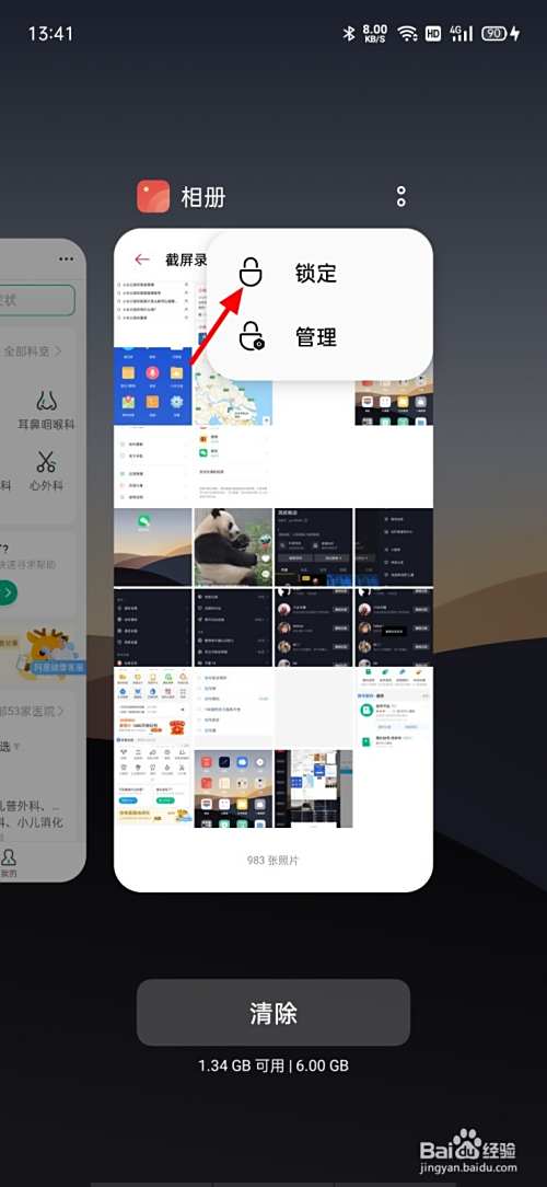 打开手机,唤出任务栏,打开菜单选项锁定应用,设置完成应用即可一直运行。
