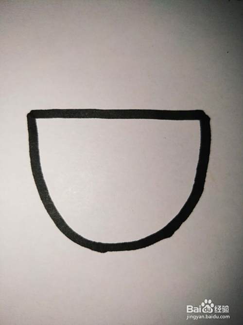 在半圆形的下端外侧画出上端与半圆形相接的长方形。