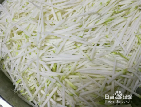 芥菜疙瘩削去不能吃的部分,清洗干净,用擦丝工具将芥菜疙瘩擦成细细的丝,越细越好;