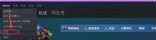 在你要共享的那台电脑上登录你自己的steam账号,进入steam主界面,点击左上角的设置。