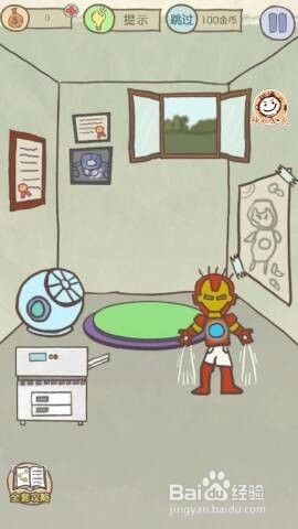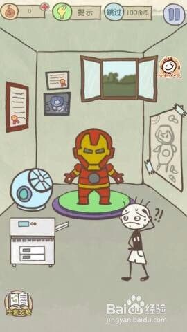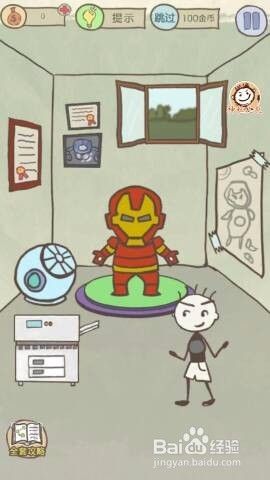 进入游戏后,我们看到主人公史小坑看着一副钢铁侠的盔甲,本关我们就需要帮助史小坑穿上这套盔甲,变成坑坑侠。