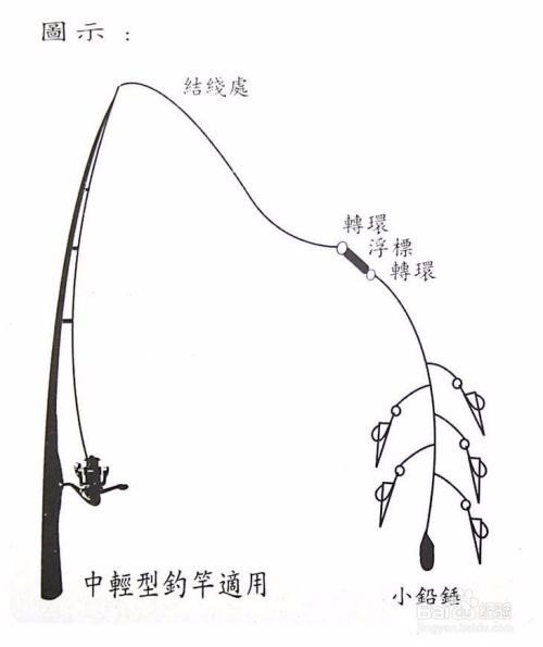 经常用的有坠上钩钓组,坠在最下方,一付串钩三至五把钩子,连接在主线和铅坠之间。坠上钩线组一般用的比较多。