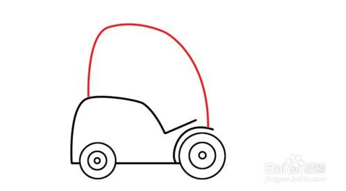 用横线连接左边的轮廓线末端和轮子,作为底盘线。在轮廓线右边末端往上往右画斜线,在右边轮子上画一道圆弧勾画挡板线。