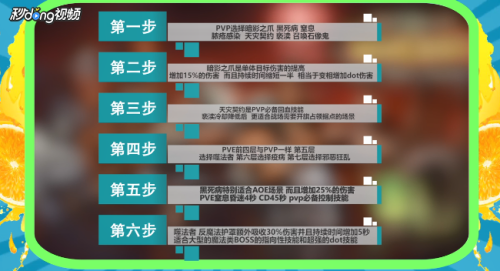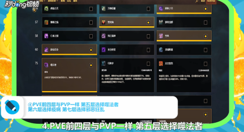 4pve前四层与PVP一样,第五层选择噬法者,第六层选择疫病,第七层选择邪恶狂乱,窒息昏迷4秒,cd45秒。