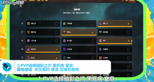 1PVP选择暗影之爪、黑死病、窒息、脓疮感染、天灾契约、亵渎、召唤石像鬼。